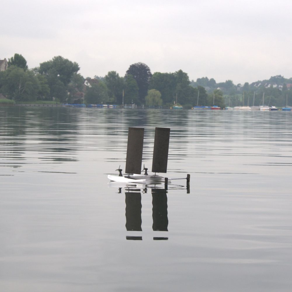 Sailing-Flying locomotion method for long-duration aerial-aquatic missions thanks to wind energy harvesting.