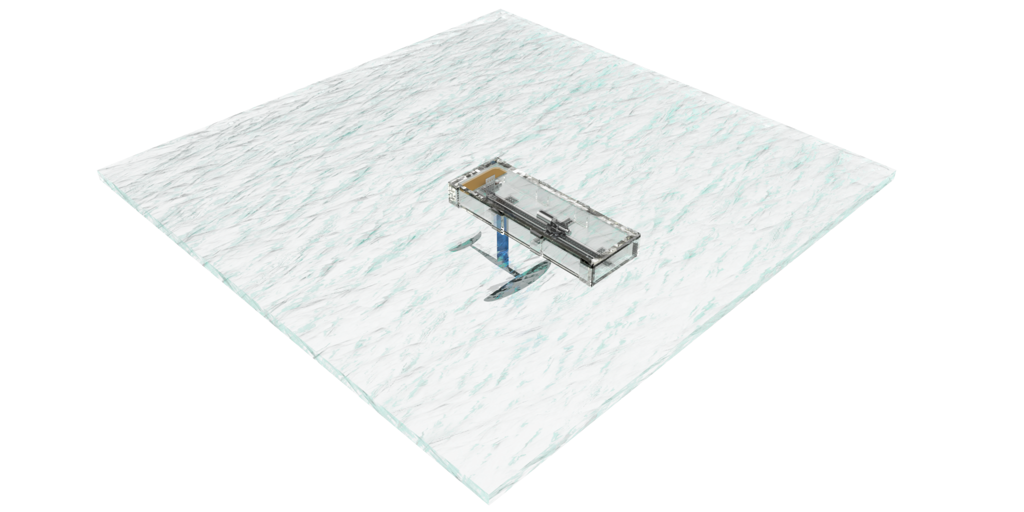One major area of interest is the use of wave energy recapture to further improve the endurance of our hydrofoil system. When people ride hydrofoils they often catch a wave like a surfer and use that to propel them where they would like to go. The WAVE will do the same, just as a fully robotic platform. This will allow the vessel to turn off its propeller and glide on the swell, which will vastly improve the endurance of the battery and range of the overall robot. WAVE will use a newly designed control system that will once again take inspiration from humans riding foils. Similar to how humans shift their weight while riding foils and surfboards to remain stable, turn, and carve into a wave, the WAVE will do the same. This will control the roll and pitch of the robot and therefore control the robot's stability and allow it to leverage roll yaw coupling to turn. This will further the efficiency gains from the foil by making the underwater portion as streamlined as possible.